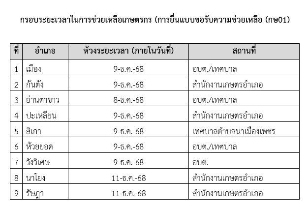 ข่าวประกาศให้ความช่วยเหลือผู้ประสบภัยพิบัติด้านพืช จังหวัดตรัง