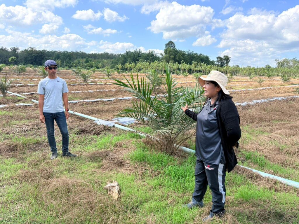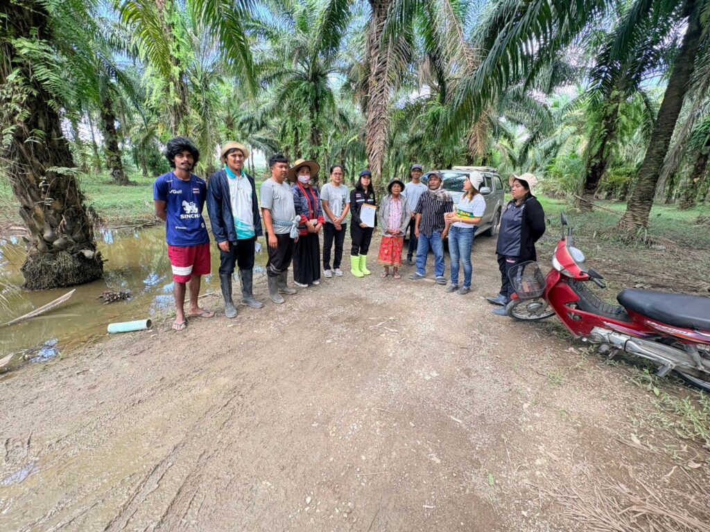 วันที่ 20 ธันวาคม 2568 นางสาววิไลวรรณ สีนา นักวิชาการส่งเสริมการเกษตรชำนาญการพิเศษรักษาราชการแทนเกษตรจังหวัดตรัง มอบหมายให้นายเอกชัย ไม้เรียง นักวิชาการส่งเสริมการเกษตรชำนาญการ กลุ่มอารักขาพืช นางสาวลินดา ดำคง นักวิชาการส่งเสริมการเกษตรชำนาญการ กลุ่มส่งเสริมและพัฒนาการผลิต และนางกนกกาญจน์ คงแก้ว นักวิชาการส่งเสริมการเกษตรชำนาญการ ร่วมกับสำนักงานเกษตรอำเภอวังวิเศษ ลงพื้นที่ให้คำแนะนำการฟื้นฟูหลังน้ำลดให้เกษตรกรที่ยังประสบภัย(อุทกภัย) ในพื้นที่หมู่ที่ 3 ตำบลท่าสะบ้า อำเภอวังวิเศษ จังหวัดตรังจากการสำรวจเบื้องต้น พบว่า ต้นปาล์มเป็นโรคที่เกิดจากเชื้อรา เช่น ยอดเน่า ทะลายเน่า รากเน่า จึงให้คำแนะนำให้เกษตรกรใช้สารเคมีป้องกันและกำจัดเชื้อรา เช่น เมตาเลคซิล (ริโดมิล) หรือ ไฟโซล-อลูมินั่ม (อาลีเอท) ผสมน้ำ 50 กรัม/น้ำ 20 ลิตร และตัดยอดปาล์มน้ำมัน หรือส่วนที่เน่าออกก่อน แล้วฉีดพ่นสารเคมีตาม และเพื่อช่วยให้ปาล์มน้ำมันฟื้นตัวได้เร็วขึ้น เกษตรกรควรฉีดพ่นปุ๋ยทางใบ เพราะระบบรากพืชยังไม่สามารถทำงานได้อย่างเต็มที่ โดยใช้ปุ๋ยเกร็ดสูตร 21-21-21