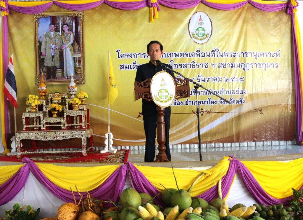 วันที่ 24 ธันวาคม 2568 นางสาววิไลววรรณ สีนา นักวิชาการส่งเสริมการเกษตรชำนาญการพิเศษ รักษาราชการแทนเกษตรจังหวัดตรัง มอบหมายให้นายชัยยศ สุวรรณลิขิต หัวหน้ากลุ่มส่งเสริมและพัฒนาการผลิต พร้อมด้วยหัวหน้ากลุ่ม เกษตรอำเภอทุกอำเภอ เจ้าหน้าที่สำนักงานสำนักงานเกษตรจังหวัดและอำเภอ ส่วนราชการในสังกัดกระทรวงเกษตรและสหกรณ์ องค์การบริหารส่วนตำบลช่อง และหน่วยงานภาคีทั้งภาครัฐและเอกชน ร่วมจัดโครงการคลินิกเกษตรเคลื่อนที่ในพระราชานุเคราะห์ สมเด็จพระบรมโอรสาธิราช ฯ สยามมกุฎราชกุมาร ครั้งที่ 1 ประจำปีงบประมาณ พ.ศ.2569 โดยมีนายทรงกลด สว่างวงศ์ ผู้ว่าราชการจังหวัดตรัง เป็นประธาน นอกจากนี้มีหัวหน้าหน่วยงานทั้งภาครัฐและเอกชน รวมถึงกลุ่มเกษตรกรออกร้านจำหน่ายสินค้าด้วย พร้อมกันนี้ ประธานในพิธีได้เดินตรวจเยี่ยมคลินิกและใช้บริการคลินิกต่างๆ อีกด้วย การจัดโครงการครั้งนี้มีเกษตรกรที่เข้ารับการบริการกว่า 369 ราย