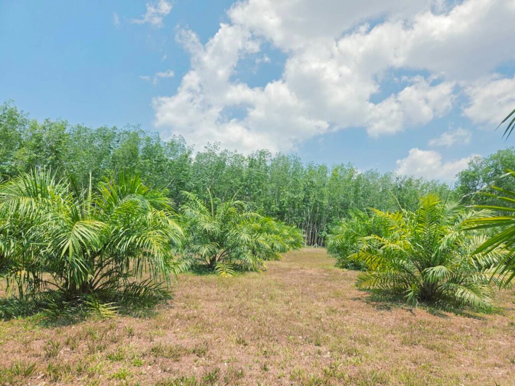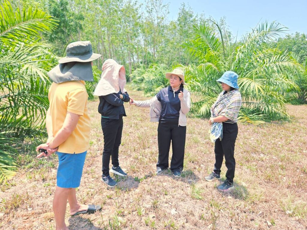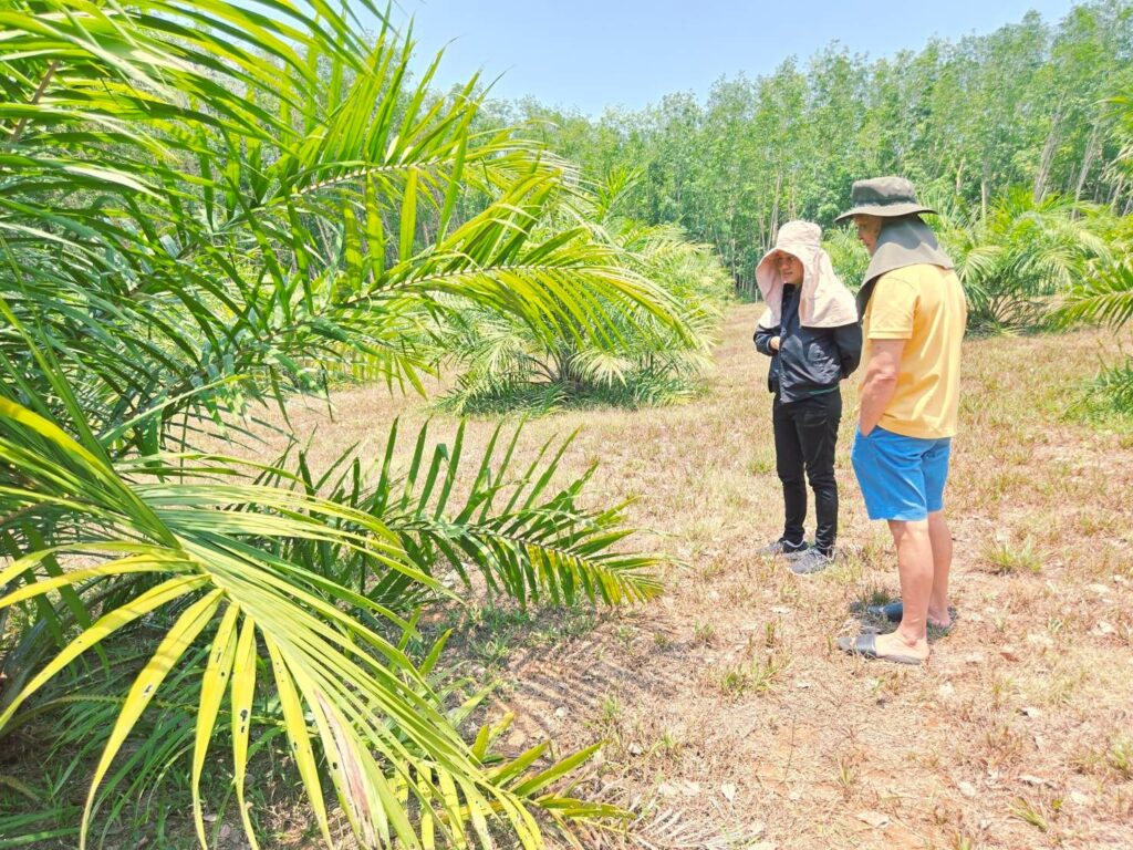 วันที่ 2 เมษายน 2569 นายจตุรงค์ พรหมวิจิต เกษตรจังหวัดตรัง ได้มอบหมายให้เจ้าหน้าที่กลุ่มอารักขาพืช ลงพื้นที่ติดตามสถานการณ์การแพร่ระบาดของโรคและแมลงศัตรูพืชในปาล์มน้ำมัน ณ แปลงปาล์มน้ำมันของนายพงษ์ศักดิ์ โสภาผล หมู่ 11 ตำบลทุ่งค่าย อำเภอย่านตาขาว จังหวัดตรัง ปลูกปาล์มน้ำมันพันธุ์ยูนิวานิช พื้นที่ 7 ไร่ อายุ 1 ปี 10 เดือน