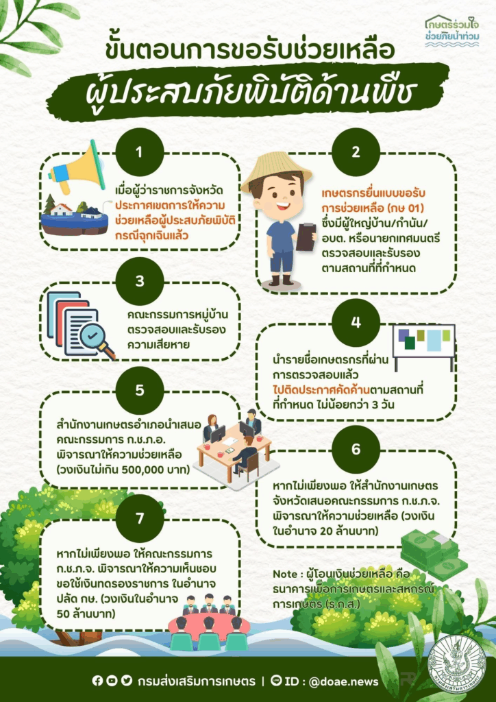 1. เกษตรกรต้องขึ้นทะเบียนเกษตรกร และปรับปรุงทะเบียนเกษตรกรกับกรมส่งเสริมการเกษตรไว้ ณ วันที่ก่อนเกิดภัย (ก่อนวันที่ 19 พ.ย. 2568)