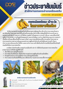 สำนักงานเกษตรอำเภอเมืองตรังแจ้งเตือนเกษตรกรผู้ปลูกกล้วย เฝ้าระวังการระบาดของโรคตายพรายในกล้วย โรคตายพรายพบได้ในกล้วยเกือบทุกชนิด เกิดจากเชื้อราชนิดหนึ่งที่เข้าทำลายบริเวณราก และลุกลามเข้าสู่ท่อน้ำ ท่ออาหาร ทำให้เกิดการอุดตัน ใบจึงแสดงอาการขาดน้ำ เหี่ยวเฉา และเปลี่ยนเป็นสีเหลือง ก้านใบหักพับ การเจริญเติบโตหยุดชะงัก และตายในที่สุด หากทำการตัดลำต้นตามแนวขวางจะพบว่าเนื้อเยื่อภายในจะเปลี่ยนเป็นสีน้ำตาลแดง หรือดำ และอาจพบเส้นใยของเชื้อราสาเหตุโรค โรคตายพรายสามารถแพร่ระบาดผ่านทางดินและจะแพร่กระจายสู่ต้นกล้วยในบริเวณใกล้เคียงอย่างรวดเร็ว จึงควรทำความ สะอาดโคนกอกล้วย ไม่ให้รก และควรทำทางระบายน้ำเพื่อป้องกันน้ำท่วมขังซึ่งเป็นหนึ่งในปัจจัยที่ส่งเสริมให้เกิดการระบาดของโรค