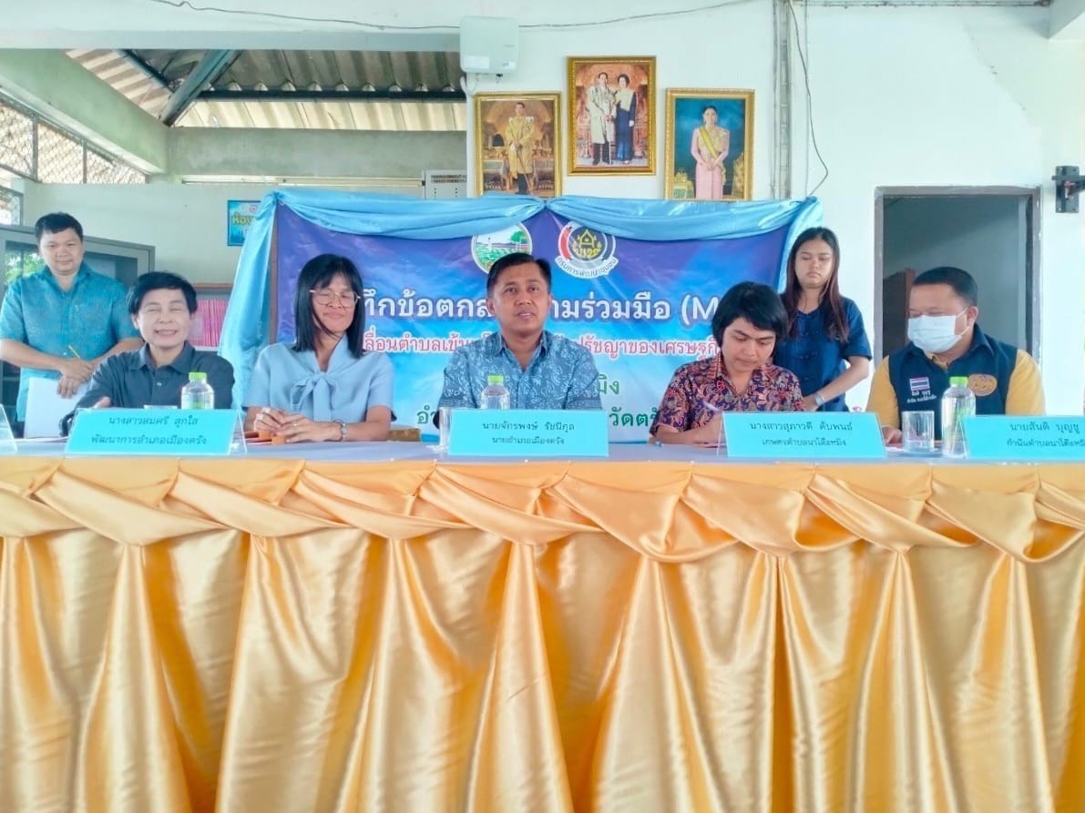 นางนิตยา จันทร์ประทีป เกษตรอำเภอเมืองตรัง มอบหมายให้ นางสาวสุภาวดี ดับพันธ์ นักวิชาการส่งเสริมการเกษตรปฏิบัติการ ร่วมกับ 7 ภาคีเครือข่าย ประชุม กิจกรรมลงนามบันทึกข้อตกลงความร่วมมือ (MOU) และประกาศวาระ “ตำบลเข้มแข็ง ตามหลักปรัชญาเศรษฐกิจพอเพียง” ณ ศาลาอเนกประสงค์ หมู่ที่ 4 ตำบลนาโต๊ะหมิง อำเภอเมืองตรัง จังหวัดตรัง โดยมี นายจักรพงษ์ รัชนีกุล นายอำเภอเมืองตรัง เป็นประธานการประชุม โดยมีวัตถุประสงค์เพื่อส่งเสริมสนับสนุนให้เกิดการพัฒนาขีดความสามารถในการบริหารจัดการชุมชน โดยชุมชน ประชาชนมีส่วนร่วมในการบริหารจัดการ ตำบลมีความเข้มแข็งใน 3 มิติ ได้แก่ ความมั่นคง ความมั่งคั่ง และความยั่งยืน
