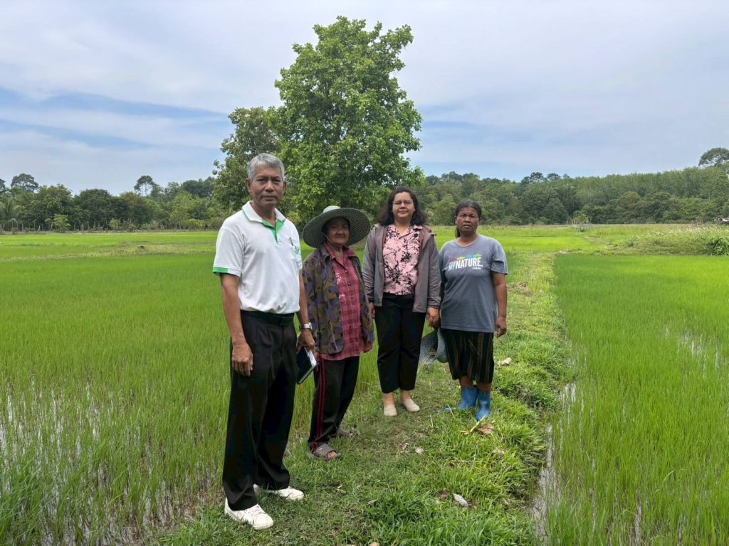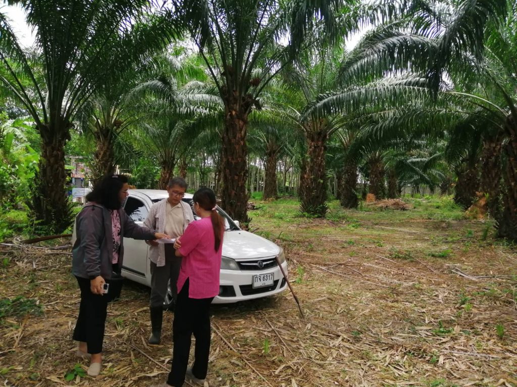 นางนิตยา จันทร์ประทีป เกษตรอำเภอเมืองตรัง มอบหมายให้นายอำนาจ เซ่งเซี่ยง นักวิชาการส่งเสริมการเกษตรชำนาญการพิเศษ และนักวิชาการส่งเสริมการเกษตร สำนักงานเกษตรอำเภอเมืองตรัง ลงพื้นที่รับขึ้นทะเบียนเกษตรกรผู้ปลูกข้าวนาปรัง และตรวจสอบพื้นที่ปลูกข้าวนาปรัง ปี 2567/68 ณ หมู่ที่ 4 ตำบลนาโยงใต้ โดยมีเกษตรกรที่ปลูกข้าวนาปรังที่ขึ้นทะเบียนแล้ว จำนวน 5 ราย เนื้อที่รวม 22 ไร่ โดยพันธุ์ข้าวที่ปลูก คือพันธุ์ข้าว กข 79 นอกจากนี้ยังได้ให้คำแนะนำการจัดการสวนปาล์มน้ำมันของเกษตรกร หมู่ที่ 5 ตำบลนาโยงใต้ ปลูกปาล์มน้ำมัน จำนวน 5 ไร่ อายุ 15 ปี ขาดการดูแลเป็นระยะเวลานาน ทำให้ปาล์มน้ำมันแสดงอาการขาดธาตุอาหาร จากการสังเกตลักษณะทางใบ อาการที่สังเกตได้ ใบเป็นจุดสีส้มกระจายทั่วทั้งใบ และอาการแถบใบขาวเกิดจากสัดส่วนของไนโตรเจน/โพแทสเซียม และใบหงิก ใบอ่อนปลายใบเป็นรูปตะขอ โดยได้ให้คำแนะนำให้เกษตรกร ใส่ปุ๋ยโพแทสเซียม 0 – 0 – 60 อัตรา 3 -4 กิโลกรัม ต่อต้น ต่อปี โดโลไมท์ อัตรา 2 กิโลกรัม ต่อต้น ต่อปี และ บอแรกซ์ อัตรา 100-200 กรัม ต่อต้น ต่อปี และแนะนำเพิ่มเติมในการจัดการกองทางใบปาล์มเพื่อให้สะดวกในการดูแลสวนปาล์มน้ำมันต่อไป