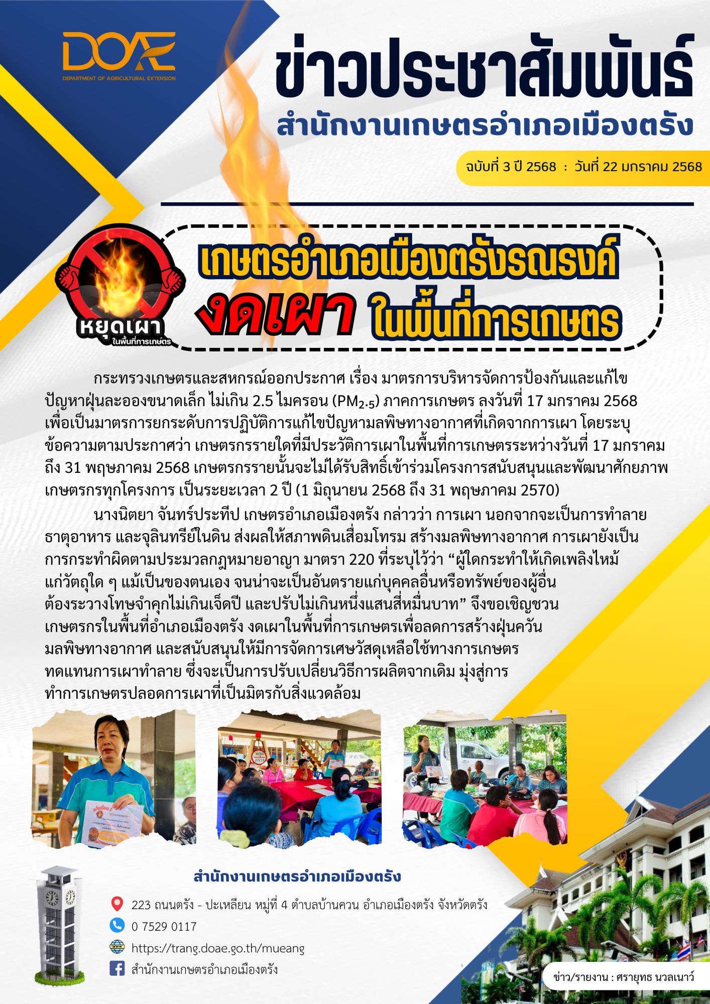ข่าวประชาสัมพันธ์ สำนักงานเกษตรอำเภอเมืองตรัง ฉบับที่ 3 ปี 2568 วันที่ 22 มกราคม 2568