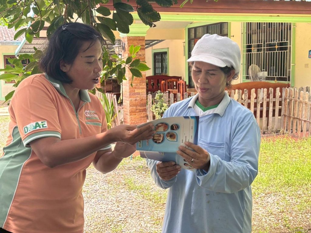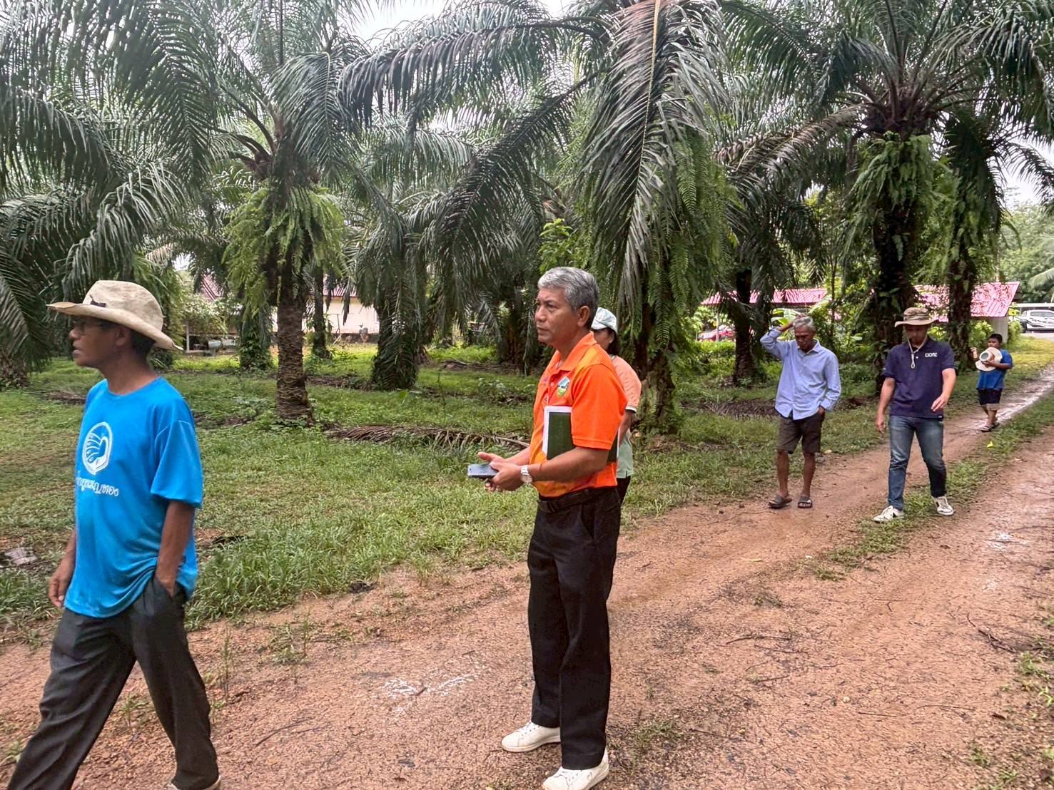 นางนิตยา จันทร์ประทีป เกษตรอำเภอเมืองตรัง มอบหมายให้นายอำนาจ เซ่งเซี่ยง นักวิชาการส่งเสริมการเกษตรชำนาญการพิเศษ พร้อมด้วย นางนนิดา คุปต์กาญจนากุล นายศรายุทธ นวลเนาว์ นักวิชาการส่งเสริมการเกษตรชำนาญการ และ นางสาวปรัศนีย์ รัตนพงศ์มณี นักวิชาการส่งเสริมการเกษตรปฏิบัติการ ลงพื้นที่สำรวจการระบาดของโรคใบจุดสาหร่ายปาล์มน้ำมัน พร้อมให้คำแนะนำในการป้องกันกำจัดโรคอย่างถูกวิธี ในพื้นที่ หมู่ที่ 4 และหมู่ที่ 8 ตำบลหนองตรุด อำเภอเมืองตรัง จังหวัดตรัง นอกจากนี้ยังได้เยี่ยมเยียนแปลงติดตามสถานการณ์การระบาดศัตรูพืชปาล์มน้ำมัน ของ นางกนกวรรณ สารวัตร หมู่ที่ 8 ตำบลหนองตรุดอำเภอเมือง จังหวัดตรัง เพื่อเก็บข้อมูลประกอบการประเมินสถานการณ์การผลิตปาล์มน้ำมันของอำเภอเมืองตรัง