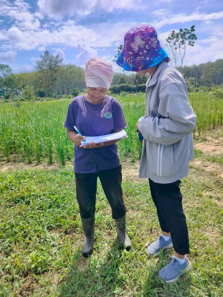 นางนิตยา จันทร์ประทีป เกษตรอำเภอเมืองตรัง มอบหมายให้นักวิชาการส่งเสริมการเกษตร สำนักงานเกษตรอำเภอเมืองตรัง ลงพื้นที่ตรวจแปลงข้าวไร่ และข้าวนาปี ฤดูกาลผลิต 2568/69 ของเกษตรกรพื้นที่ หมู่ที่ 10 และหมู่ที่ 12 ตำบลนาท่ามเหนือ หมู่ที่ 5 ตำบลหนองตรุด อำเภอเมืองตรัง จังหวัดตรัง ซึ่งปลูกข้าวพันธุ์หอมหัวบอน และข้าวเล็บนกปัตตานี จำนวนรวมทั้งสิ้น 7 ราย พื้นที่รวม 34 ไร่ โดยปลูกในลักษณะแซมปาล์มน้ำมัน อายุไม่เกิน 3 ปี ทั้งนี้ผลผลิตที่ได้ส่วนใหญ่เกษตรกรจะเก็บไว้บริโภคภายในครัวเรือน และจำหน่ายเป็นรายได้เสริมในขณะที่ยางพาราและปาล์มน้ำมันยังไม่ให้ผลผลิต