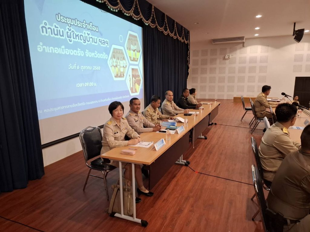 นางนิตยา จันทร์ประทีป เกษตรอำเภอเมืองตรัง ร่วมประชุมกำนัน ผู้ใหญ่บ้านฯ ครั้งที่ 10/2568 ประจำเดือนตุลาคม 2568 ณ หอประชุมจังหวัดตรัง ถนนพระรามหก ตำบลทับเที่ยง อำเภอเมืองตรัง จังหวัดตรัง เพื่อรับทราบ และปรึกษาวาระสำคัญต่างๆ จากหน่วยงานราชการระดับอำเภอ อำเภอเมืองตรัง โดยมีหัวหน้าส่วนราชการระดับอำเภอ กำนัน ผู้ใหญ่บ้าน และผู้ช่วยผู้ใหญ่บ้าน ร่วมประชุม