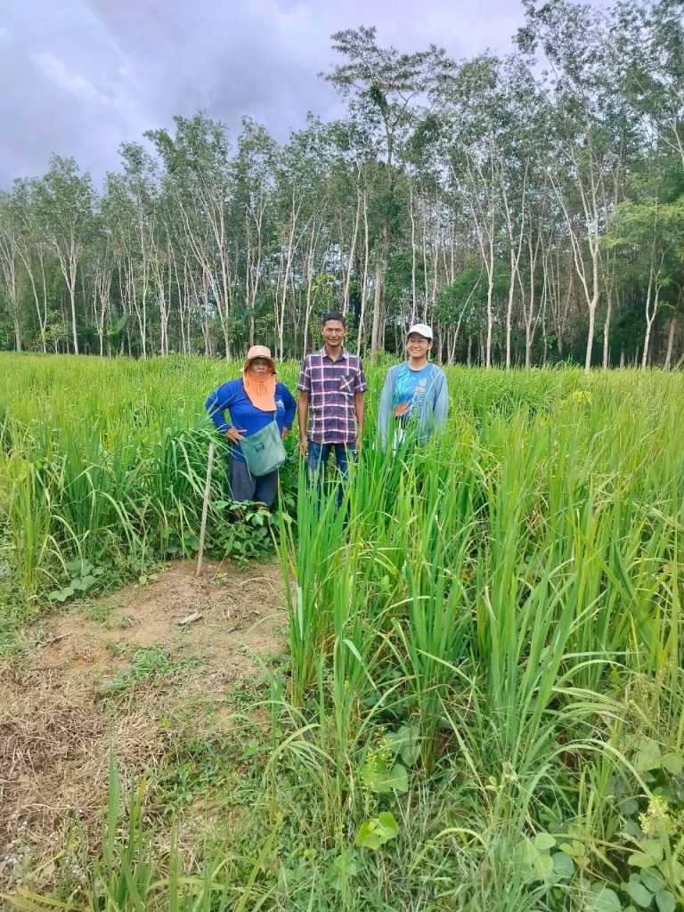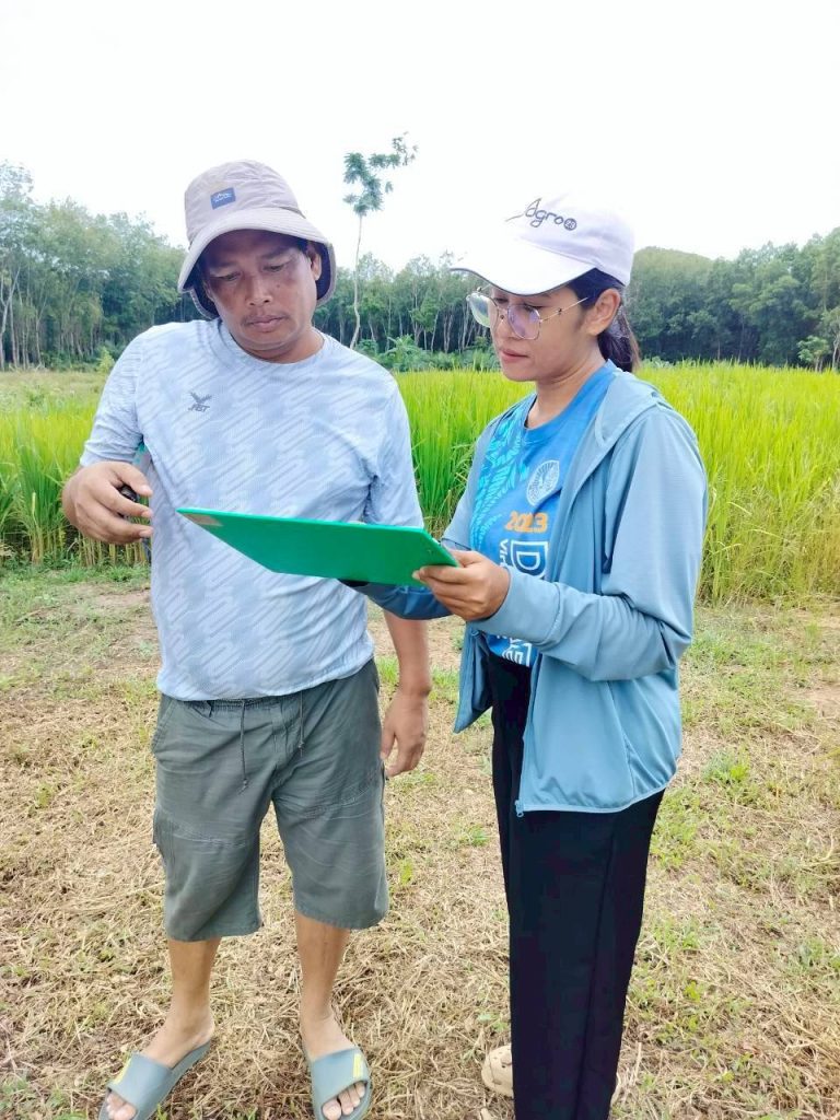 นางนิตยา จันทร์ประทีป เกษตรอำเภอเมืองตรัง มอบหมายให้ นางวิภารัตน์ มาลัยเล็ก นักวิชาการส่งเสริมการเกษตรชำนาญการ ร่วมกับผู้นำชุมชนและอาสาสมัครเกษตรหมู่บ้าน ตรวจแปลงข้าวไร่ และข้าวนาปีฤดูกาลผลิต 2568/69 ของเกษตรกรพื้นที่ หมู่ที่ 2 หมู่ที่ 3 และหมู่ที่ 6 ตำบลนาท่ามใต้ อำเภอเมืองตรัง จังหวัดตรัง ซึ่งปลูกข้าวพันธุ์หอมหัวบอน และข้าวดอกพะยอม ดอกข่า และข้าวเบายอดม่วง จำนวน 7 ราย พื้นที่รวม 25 ไร่ โดยปลูกในลักษณะแซมสวนปาล์มน้ำมัน อายุไม่เกิน 3 ปี ทั้งนี้ผลผลิตที่ได้ส่วนใหญ่เกษตรกรจะเก็บไว้บริโภคภายในครัวเรือน และจำหน่ายเป็นรายได้เสริมในขณะที่ยางพาราและปาล์มน้ำมันยังไม่ให้ผลผลิต