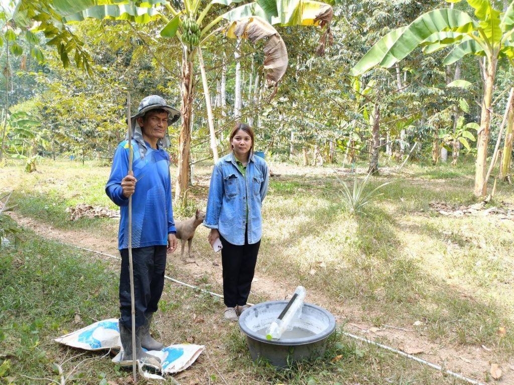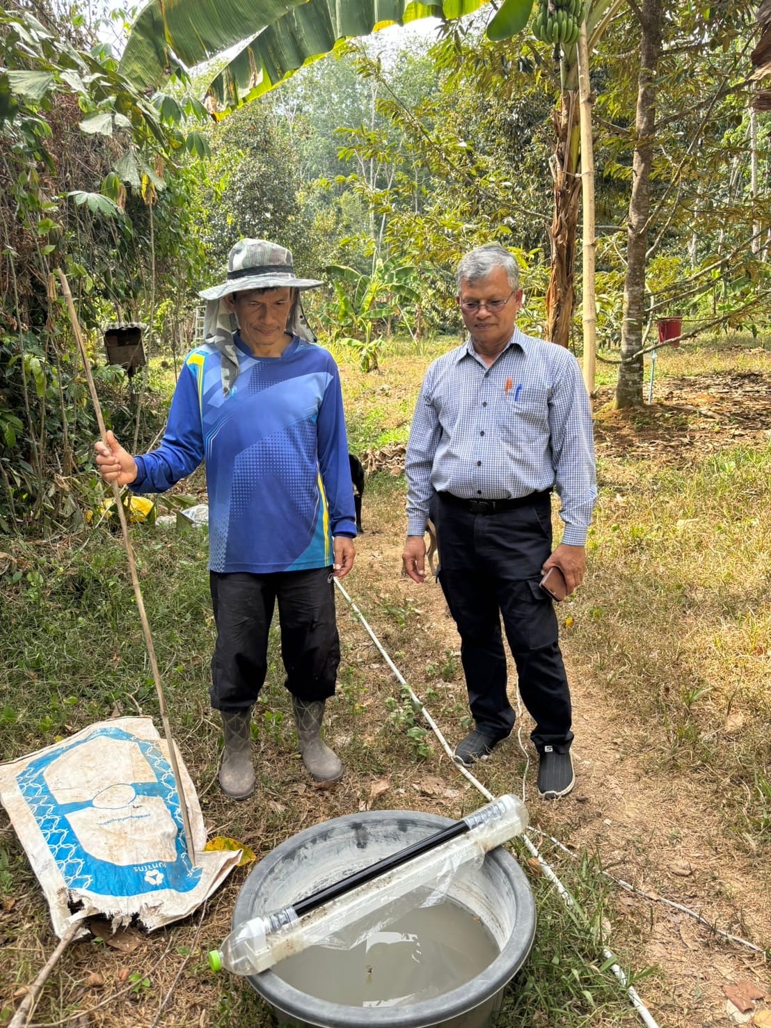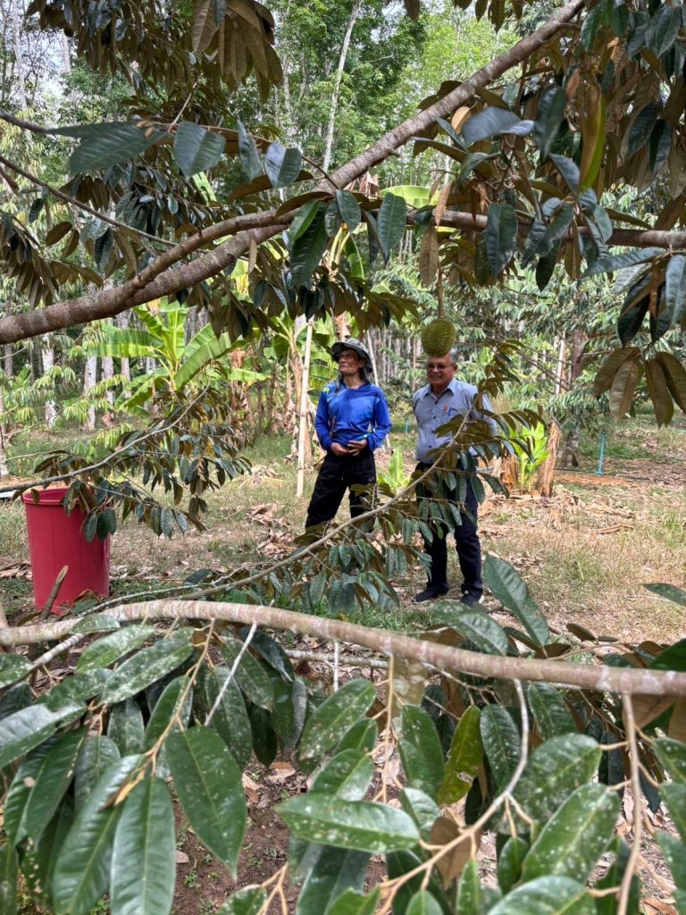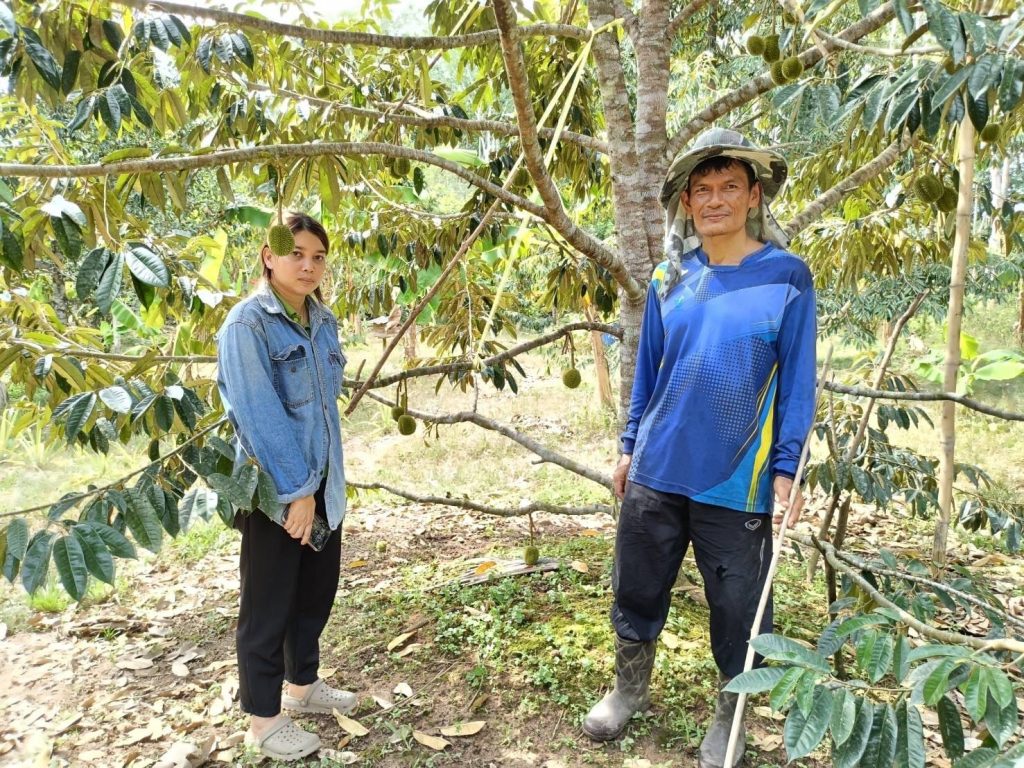 นางนิตยา จันทร์ประทีป เกษตรอำเภอเมืองตรัง มอบหมาย นายประทิ่น วรรณงาม นักวิชาการส่งเสริมการเกษตรชำนาญการพิเศษ และนางสาวปรัศนีย์ รัตนพงศ์มณี นักวิชาการส่งเสริมการเกษตรปฏิบัติการ สำนักงานเกษตรอำเภอเมืองตรัง ลงพื้นที่ติดตามผลการใช้กับดักแสงไฟแบลคไลท์ เพื่อควบคุมและป้องกันการเข้าทำลายของหนอนเจาะผลและหนอนเจาะเมล็ดทุเรียน ณ แปลงทุเรียนของ นายจิราวัฒน์ จันทร์แสง พื้นที่ 5 ไร่ จากการลงพื้นที่พบว่า เกษตรกรได้ปฏิบัติตามคำแนะนำของเจ้าหน้าที่อย่างเคร่งครัด และผลของการปฏิบัติตามวิธีการดังกล่าวให้ผลที่น่าพอใจ โดยปัจจุบันทุเรียนของนายจิราวัฒน์ อยู่ในระยะติดผลหลังดอกบาน 5-6 สัปดาห์ แต่ยังไม่พบการเข้าทำลายของของหนอนเจาะผลและหนอนเจาะเมล็ดทุเรียน และยังไม่พบผลผลิตทุเรียนเสียหายแต่อย่างใด