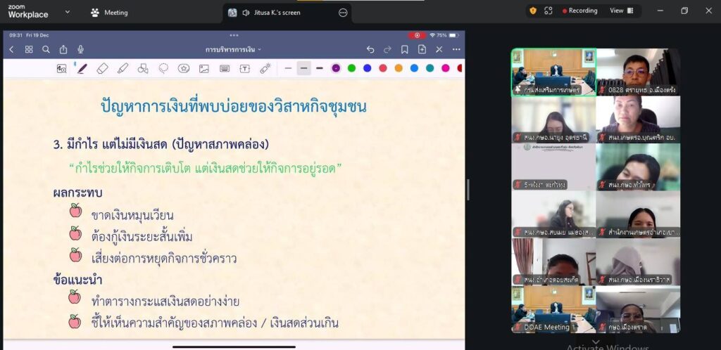 นางนิตยา จันทร์ประทีป เกษตรอำเภอเมืองตรัง มอบหมายให้ นายศรายุทธ นวลเนาว์ นักวิชาการส่งเสริมการเกษตรชำนาญการ ร่วมอบรมพัฒนาทักษะนายทะเบียนวิสาหกิจชุมชนผ่านระบบ Zoom Meeting ระหว่างวันที่ 18 ถึง 19 ธันวาคม 2568 ซึ่งจัดโดยกรมส่งเสริมการเกษตร โดยมีวัตถุประสงค์เพื่อสร้างความรู้ ความเข้าใจในการดำเนินงานด้านทะเบียนวิสาหกิจชุมชน แนวทางการให้คำแนะนำวิสาหกิจชุมชนในการจดทะเบียนจัดตั้งนิติบุคคล ภาษีที่เกี่ยวข้องกับวิสาหกิจชุมชน การบริการจัดการด้านการเงินให้กับนายทะเบียนวิสาหกิจชุมชน และเจ้าหน้าที่ผู้รับผิดชอบงานที่เกี่ยวข้อง