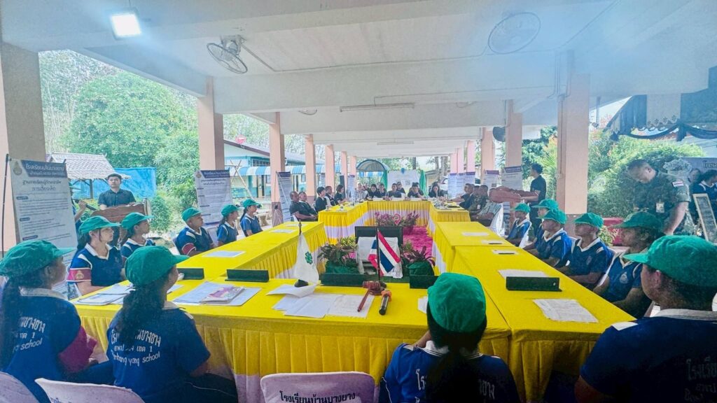 นางนิตยา จันทร์ประทีป เกษตรอำเภอเมืองตรัง พร้อมด้วย เจ้าหน้าที่สำนักงานเกษตรอำเภอเมืองตรัง ร่วมต้อนรับคณะกรรมการคัดเลือกสถาบันเกษตรกรดีเด่นระดับจังหวัดปี 2569 ประเภท กลุ่มยุวเกษตรกร สมาชิกยุวเกษตรกร และที่ปรึกษายุวเกษตรกร ในการนี้ นางสาวเพียงตะวัน วิคบำเพิง ผู้อำนวยการโรงเรียนบ้านบางยางได้กล่าวต้อนรับ คณะกรรมการและภาคีเครือข่าย โดยมี นายชัยชาญ เพชรคง หัวหน้ากลุ่มพัฒนาเกษตรกร และคณะกรรมการ ฯ ณ โรงเรียนบ้านบางยาง หมู่ที่ 1 ตำบลนาท่ามเหนือ อำเภอเมืองตรัง จังหวัดตรัง ซึ่งมีนางสาวเพียงตะวัน วิคบำเพิง ครูที่ปรึกษายุวเกษตรกร นำเสนอผลงานการดำเนินการของกลุ่มฯ และผลงานในฐานะครูที่ปรึกษายุวเกษตรกร พร้อมเด็กหญิงณัฐวดี คงเพ็ง สมาชิกยุวเกษตรกร ร่วมนำเสนอผลงานในฐานะสมาชิก โดยกลุ่มมีการดำเนินกิจกรรมการเกษตรอย่างต่อเนื่องผ่าน 15 ฐานเรียนรู้ด้านเกษตร มีการพัฒนากิจกรรมต่างๆอย่างชัดเจนและทดลองทำกิจกรรมใหม่ๆ เพื่อให้สมาชิกได้เรียนรู้หารูปแบบหรือกิจกรรมที่เหมาะสมให้กับกลุ่มเพื่อให้ การปฏิบัติงานเกิดความสำเร็จ โดยมีที่ปรึกษากลุ่มยุวเกษตรกร นางสาวเพียงตะวัน วิคบำเพิง ทำหน้าที่ให้คำแนะนำ ช่วยเหลือ ประสานงาน และแก้ไขปัญหาต่าง ๆ เพื่อให้การดำเนินงานและกิจกรรมของกลุ่มยุวเกษตรกรบรรลุผลตามแผนงานที่วางไว้ และที่สำคัญกลุ่มยังได้น้อมนำหลักปรัชญาเศรษฐกิจพอเพียงมาประยุกต์ใช้ในการปฏิบัติงานด้วยความรู้คู่คุณธรรม เพื่อสร้างรากฐานที่เข้มแข็งให้กับเยาวชนในพื้นที่ต่อไป