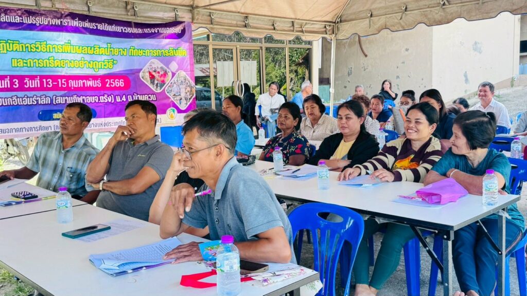 เกษตรเมืองตรัง ร่วมกับ กยท.เมืองตรัง จัดเวทีเสริมแกร่งแปลงใหญ่ยางพาราบ้านไสปุด 3 หลักสูตร มุ่งเน้นเพิ่มผลิตภาพการผลิต