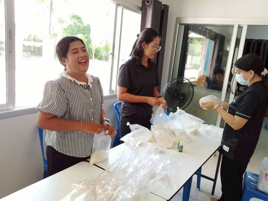 นางนิตยา จันทร์ประทีป เกษตรอำเภอเมืองตรัง มอบหมายเจ้าหน้าที่สำนักงานเกษตรอำเภอเมืองตรังผลิตขยายเชื้อราไตรโคเดอร์มาเพื่อสนับสนุนให้บริการเกษตรกรในการฟื้นฟูพื้นที่เกษตรหลังอุทกภัย ณ สำนักงานเกษตรอำเภอเมืองตรัง จังหวัดตรัง