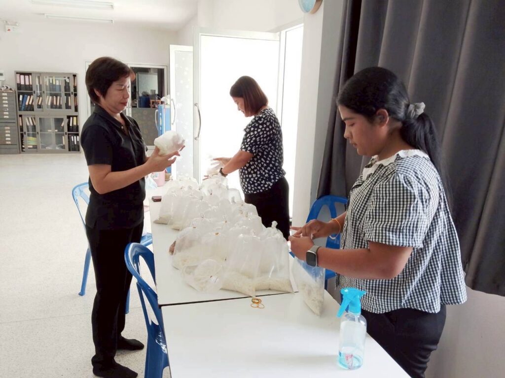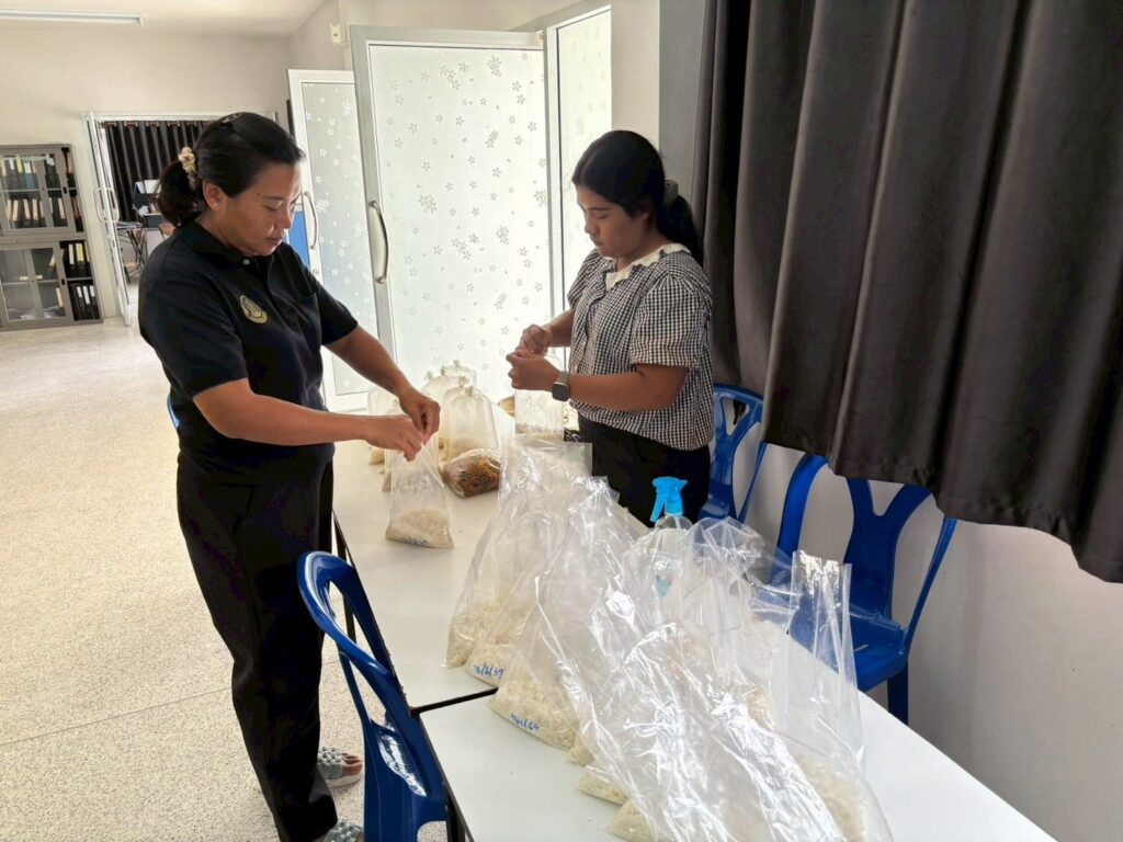 นางนิตยา จันทร์ประทีป เกษตรอำเภอเมืองตรัง มอบหมายเจ้าหน้าที่สำนักงานเกษตรอำเภอเมืองตรัง ผลิตขยายเชื้อราไตรโคเดอร์มาเพื่อสนับสนุนให้บริการเกษตรกรในการฟื้นฟูพื้นที่เกษตรหลังอุทกภัย ณ สำนักงานเกษตรอำเภอเมืองตรัง จังหวัดตรัง