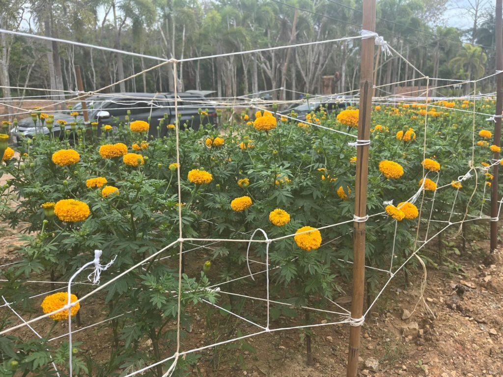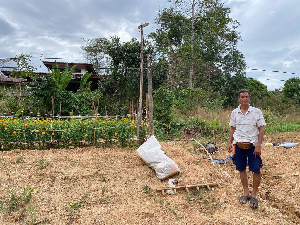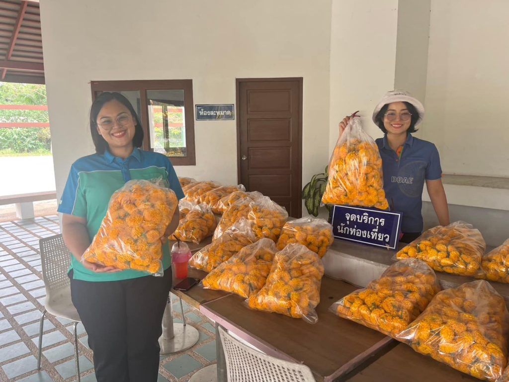 วันที่ 24 มกราคม 2568 นางสาวสุมนรัตน์ ตรึกตรอง เกษตรอำเภอสิเกา พร้อมด้วยเจ้าหน้าที่สำนักงานเกษตรอำเภอสิเกา เยี่ยมเยียนนายประเสริฐ แสงศรีจันทร์ Smart Farmer หมู่ที่ 1 ตำบลไม้ฝาด อำเภอสิเกา จังหวัดตรัง ซึ่งใช้เวลาว่างหลังจากการทำสวนยางพาราและสวนปาล์มน้ำมัน มาปลูกดอกดาวเรืองเป็นอาชีพเสริม โดยแต่ละรอบจะลงปลูกช่วงต้นเดือน ปลูกครั้งละ 800 ต้น ต้นพันธุ์ซื้อมาราคาต้นละ 1.80 บาท ต้นทุนในการปลูกแต่ละรอบประมาณ 2,000 บาท ใช้เวลาปลูก 45 วัน ก็สามารถเก็บดอกขายได้เเล้ว ในหนึ่งรอบการปลูกสามารถเก็บดอกดาวเรืองขายได้ประมาณ 2 เดือน สร้างรายได้เสริมถึงหลักหมื่นบาทต่อเดือน