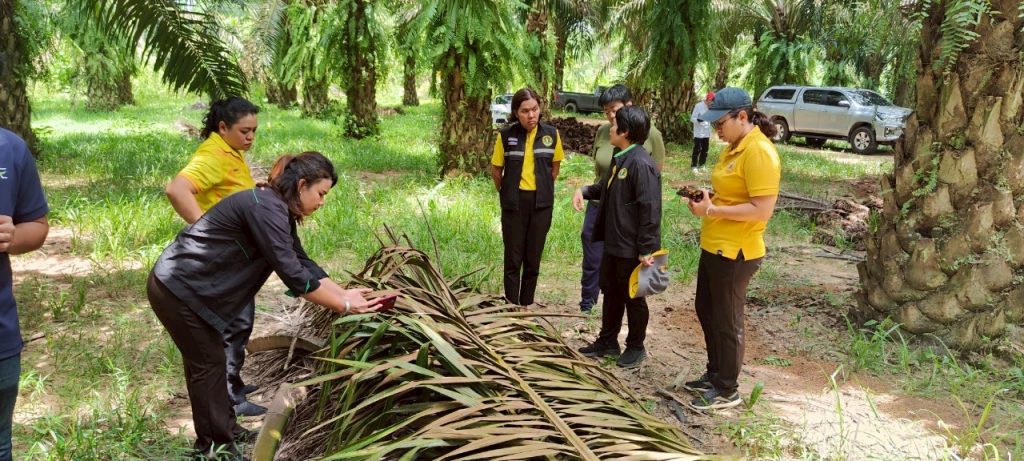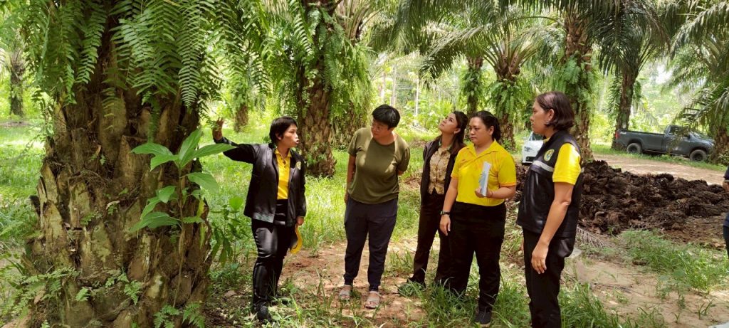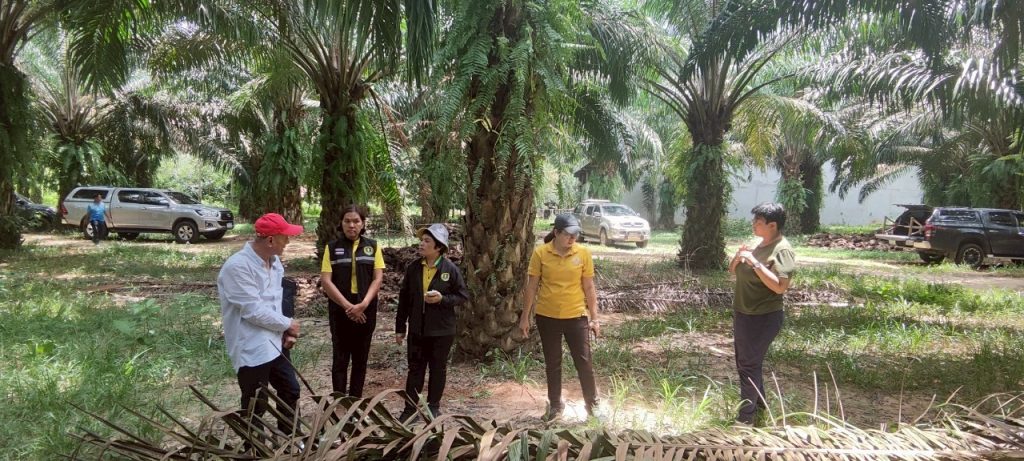 วันที่ 1 สิงหาคม 2568 นางสาวสุมนรัตน์ ตรึกตรอง เกษตรอำเภอสิเกา พร้อมด้วยเจ้าหน้าที่สำนักงานเกษตรอำเภอสิเกา ร่วมกับเจ้าหน้าที่กลุ่มอารักขาพืช สำนักงานเกษตรจังหวัดตรัง ผู้อำนวยการศูนย์ส่งเสริมเทคโนโลยีการเกษตรด้านอารักขาพืช จังหวัดสงขลา และสมศักดิ์ แก้วกูล ผู้ใหญ่บ้านหมูที่1 ตำบลไม้ฝาด ลงพื้นที่พื้นที่ปลูกปาล์มน้ำมันในหมู่ที่1 ตำบลไม้ฝาดเพื่อสร้างการรับรู้และถ่ายทอดความรู้เกี่ยวกับสาเหตุหลักของการเกิดโรคใบจุดสาหร่าย ที่เกิดจากสภาพแวดล้อม และการแก้ไขปัญหาเบื้องต้น โดยการตัดแต่งทางใบเผาทำลาย การจัดการแปลง การจัดการธาตุอาหารที่เหมาะสมเพื่อลดการเกิดโรคให้กับเกษตรกร การใช้สารเคมีเพื่อกำจัดโรค และหาแนวทางร่วมกันในการจัดการโรคใบจุดสาหร่าย โดยโรคใบจุดสาหร่ายที่เกิดในปาล์มน้ำมัน ซึ่งเกิดจากสาหร่าย Phycopeltis sp. เจริญที่ผิวด้านบนของพืช โดยแสดงอาการเป็นจุดเล็กๆหรือเป็นแผ่นขนาดใหญ่(หากลุกลาม)บนใบ โดยจุดเล็กๆสามารถขยายขนาดใหญ่ขึ้นได้โดยเฉพาะสภาพอากาศที่มีความชื้นสูงเป็นระยะเวลาติดต่อกัน มีผลทำให้พื้นที่สังเคราะห์แสงบนใบได้น้อยลงแต่ไม่เป็นอันตรายต่อพืช ระบาดมากในช่วงฤดูฝน โดยสปอร์ของสาหร่ายสามารถแพร่กระจายได้ทางลมและฝน ในการนี้นายมานิตย์ ท่าจีน นายอำเภอสิเกา และปลัดอำเภอ ร่วมสร้างการรับรู้ด้วย ณ ศาลาหกเหลี่ยมบริการนักท่องเที่ยว้ำตกอ่างทอง หมู่ที่ 1 ตำบลไม้ฝาด อำเภอสิเกา จังหวัดตรัง