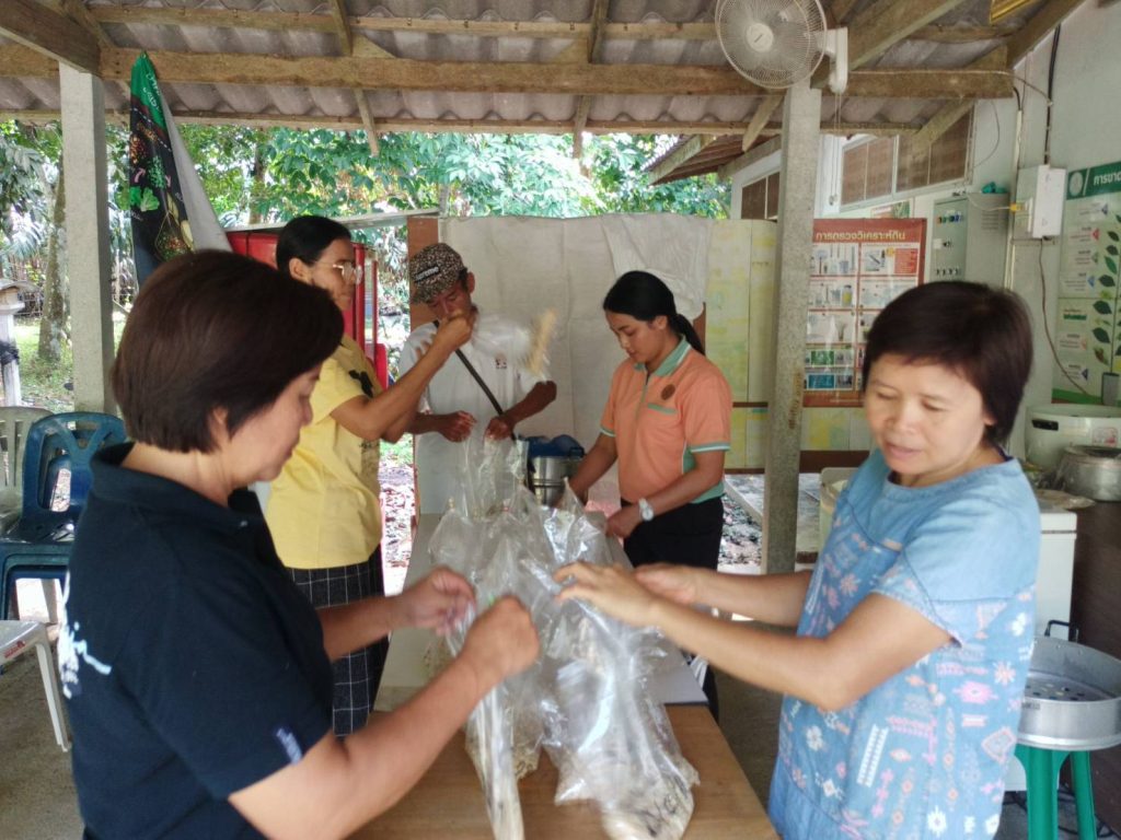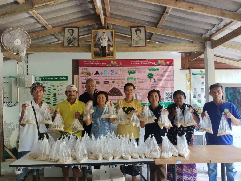 3.ร่วมกันผลิตขยายเชื้อราไตรโคเดอร์มา วิธีการใช้เชื้อราไตรโคเดอร์มาในอัตราส่วนดังนี้